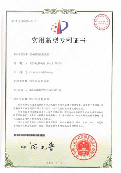 重視知識(shí)產(chǎn)權(quán),不斷進(jìn)行創(chuàng)新,憑著以技術(shù)行業(yè)的理念,TST公司又獲得了由知識(shí)產(chǎn)權(quán)局頒發(fā)的四項(xiàng)發(fā)明利證書,分別是兩項(xiàng)實(shí)用新型:臂式擺動(dòng)跟隨裝置、種便攜式鋼絲繩損傷探測(cè)裝置。兩項(xiàng)外觀利:鋼絲繩探傷儀(防爆可攜帶型)、鋼絲繩探傷儀(攜帶式大直徑型)。
