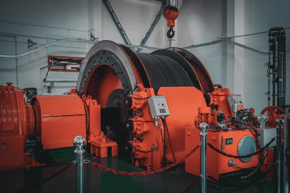 然后我們來(lái)到副井提升機(jī)機(jī)房
