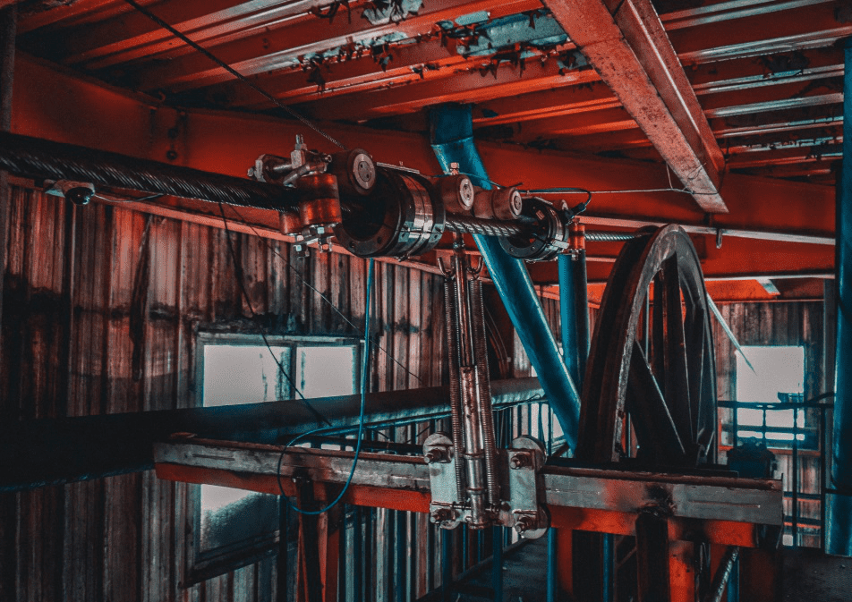 隨后我們爬上100多米高副井提升機(jī)天輪機(jī)房