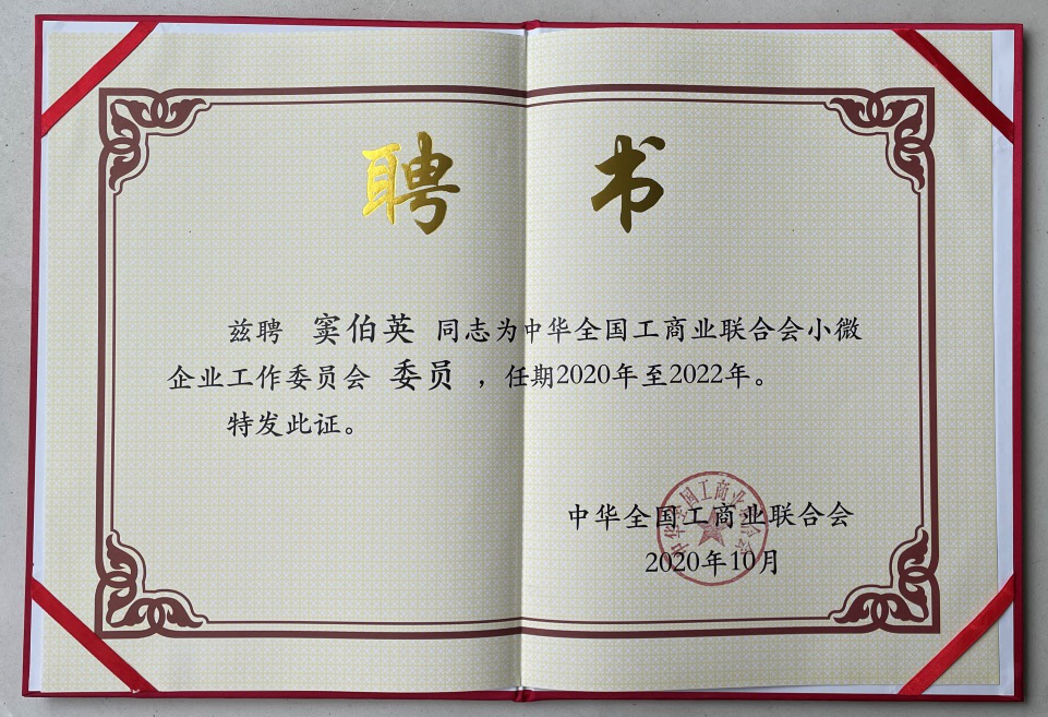 為進一步落實新時代民營經濟統戰工作的要求,有效擴大統戰工作覆蓋面,加強與小微企業的聯系,積極打通小微企業參政議政的通道,推動改善小微企業發展環境,經中華全國工商業聯合會(簡稱:全國工商聯)2020年第10次主席辦公會議研究,成立全國工商聯小微企業工作委員會,并聘請洛陽泰斯特探傷技術有限公司(簡稱:泰斯特公司)CEO竇伯英女士出任中華全國工商業聯合會小微企業工作委員會委員。
