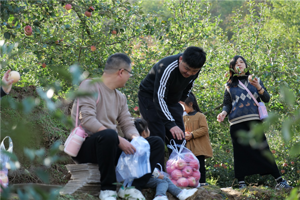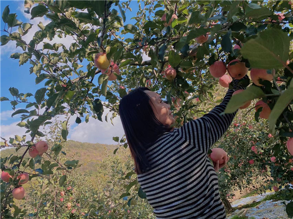 除了美味的燒烤,還有收獲了一筐筐紅彤彤的蘋果。