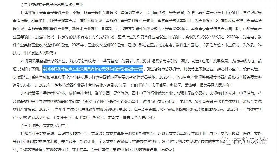 根據落實河南省政府“一谷兩基地”的要求,形成以市場需求為牽引的“研發(fā)+制造+應用”發(fā)展格局。支持泰斯特探傷等企業(yè)發(fā)展具有核心元器件的新型智能傳感器,引進智能傳感器設計、封裝等上下游企業(yè),推動材料生產、設計制造、封裝測試、系統(tǒng)集成和重點應用全產業(yè)鏈發(fā)展,打造中西部地區(qū)重要的智能傳感器基地。
