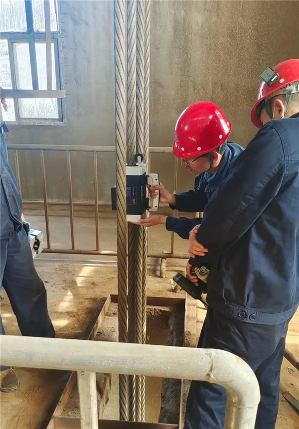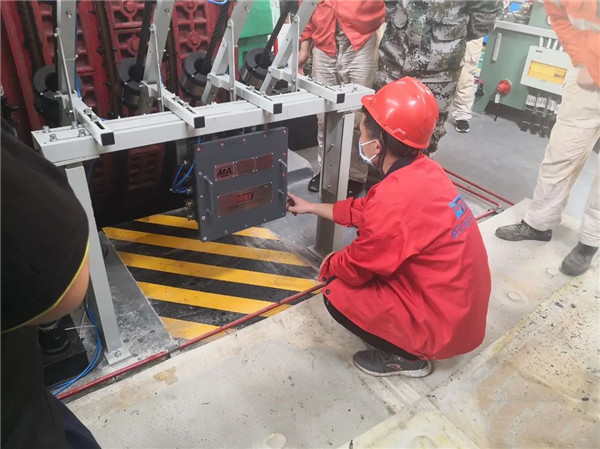 山西的安裝現場,工程師盛俊濤和李朋朋倆人相互配合順利的完成了一臺四繩提升機鋼絲繩檢測系統的安裝,現場培訓系統操作方法。